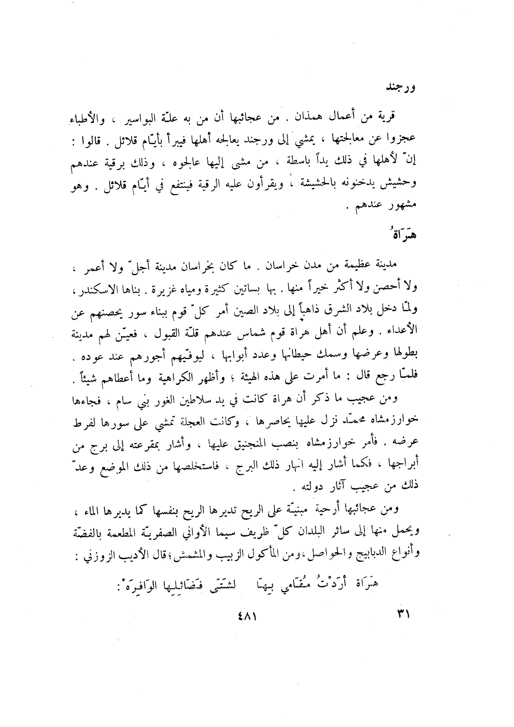 هراة أردت مقامي بها ... لشتّى فضائلها الوافره: