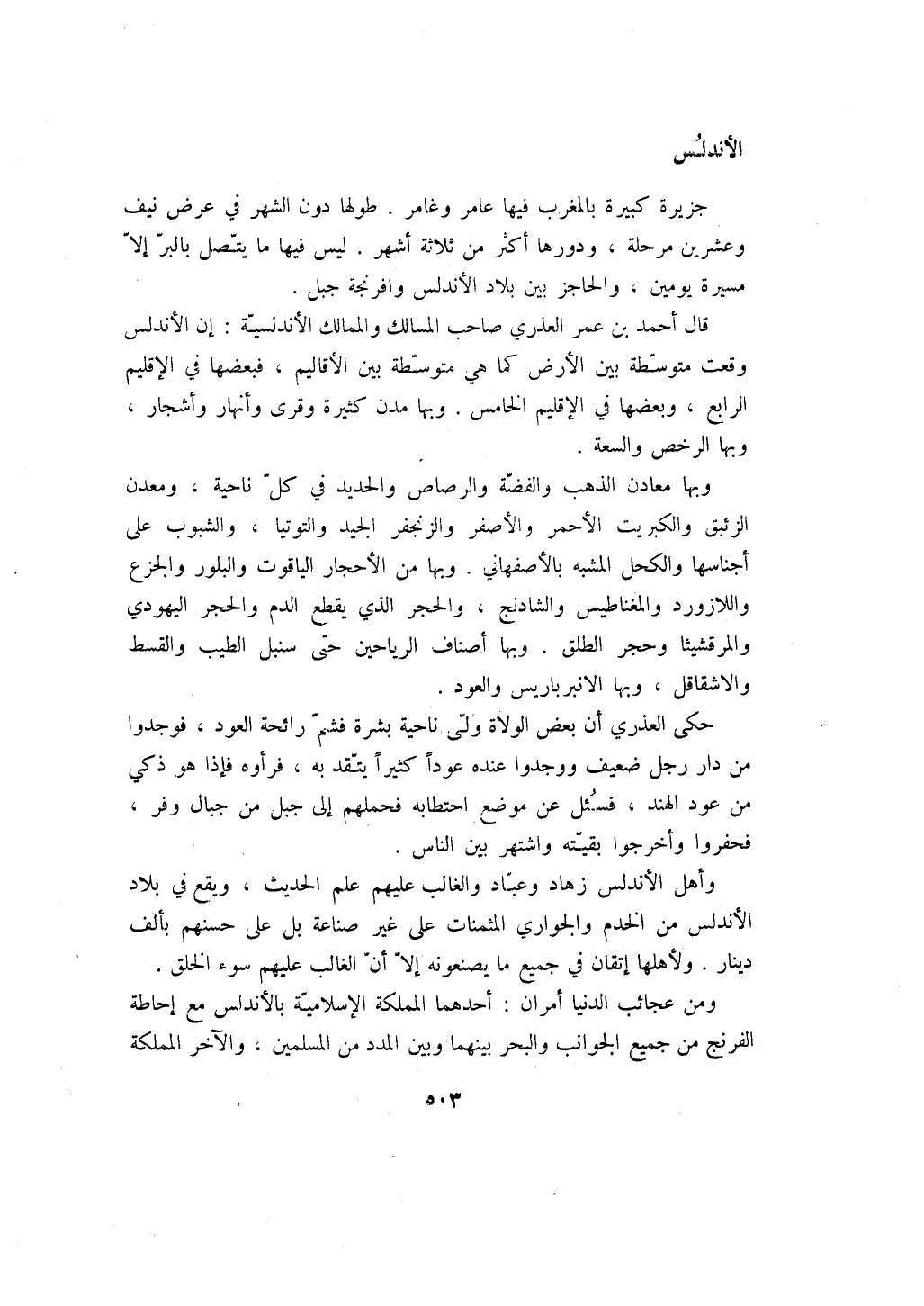 ومن عجائب الدنيا أمران: أحدهما المملكة الإسلامية بالأندلس مع إحاطة الفرنج من جميع الجوانب والبحر بينهما وبين المدد من المسلمين، والآخر المملكة