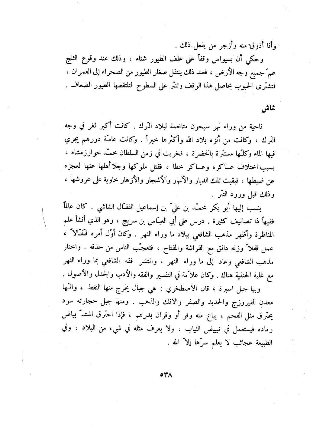 ينسب إليها أبو بكر محمد بن علي بن إسماعيل القفال الشاشي. كان عالماً فقيهاً ذا تصانيف كثيرة. درس على أبي العباس بن سريج، وهو الذي أنشأ علم المناظرة وأظهر مذهب الشافعي ببلاد ما وراء النهر. وكان أول أمره قفالاً، عمل قفلاً وزنه دانق مع الفراشة والمفتاح، فتعجب الناس من حذقه. واختار مذهب الشافعي وعاد إلى ما وراء النهر، وانتشر فقه الشافعي بما وراء النهر مع غلبة الحنفية هناك. وكان علامة في التفسير والفقه والأدب والجدل والأصول.