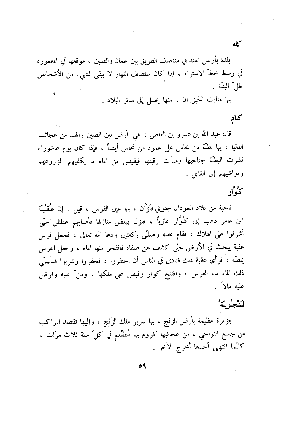 جزيرة عظيمة بأرض الزنج، بها سرير ملك الزنج، وإليها تقصد المراكب من جميع النواحي، من عجائبها كروم بها تطعم في كل سنة ثلاث مرات، كلما انتهى أحدها أخرج الآخر.