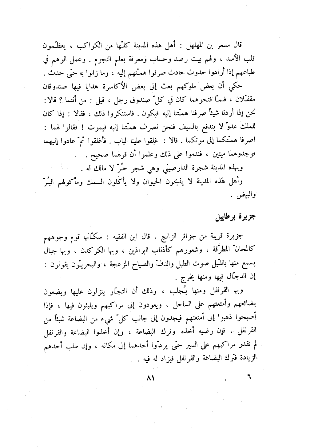 قال مسعر بن المهلهل: أهل هذه المدينة كلها من الكواكب، يعظمون قلب الأسد، ولهم بيت رصد وحساب ومعرفة بعلم النجوم. وعمل الوهم في طباعهم إذا أرادوا حدوث حادث صرفوا همتهم إليه، وما زالوا به حتى حدث.
