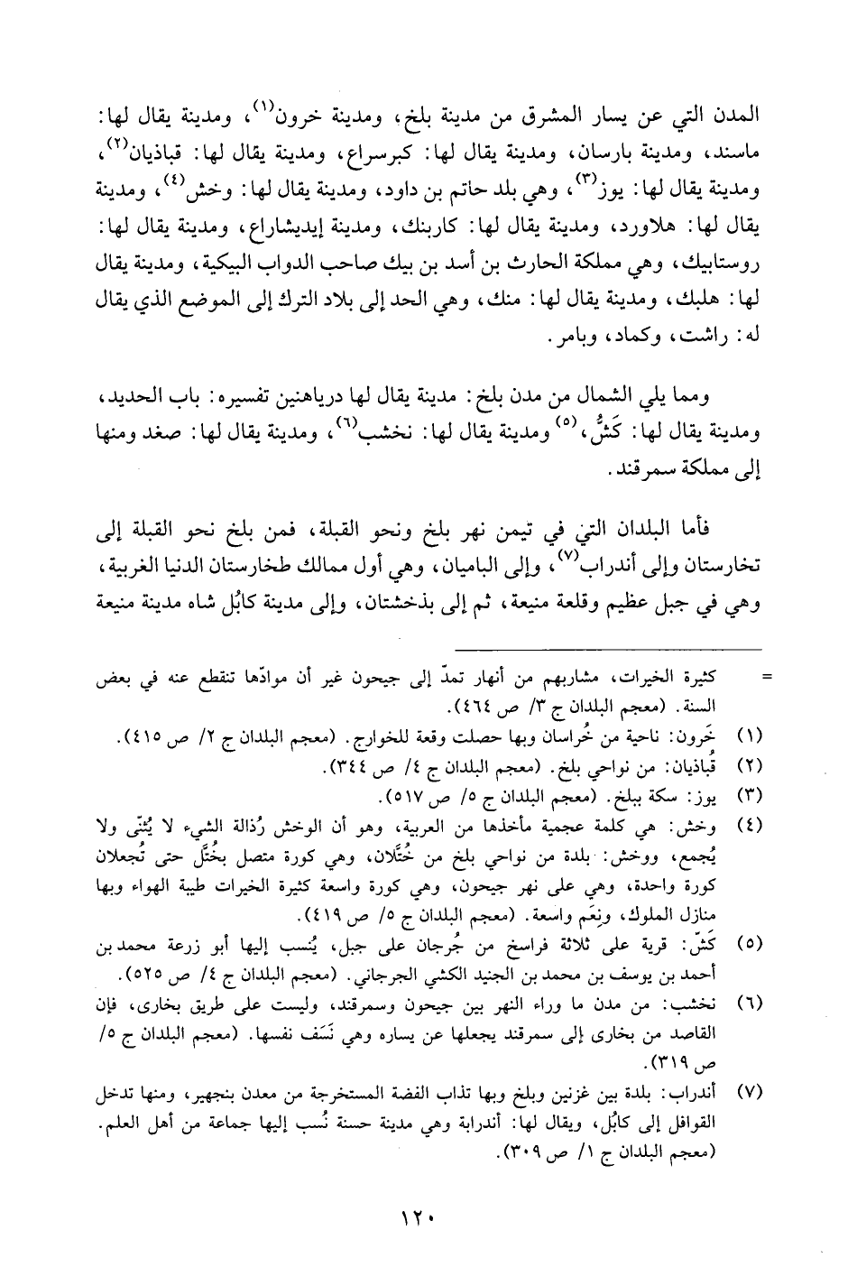 ومما يلي الشمال من مدن بلخ: مدينة يقال لها دريا هنين تفسيره: باب الحديد، ومدينة يقال لها: كشّ، «5» ومدينة يقال لها: نخشب «6» ، ومدينة يقال لها: صغد ومنها إلى مملكة سمرقند.