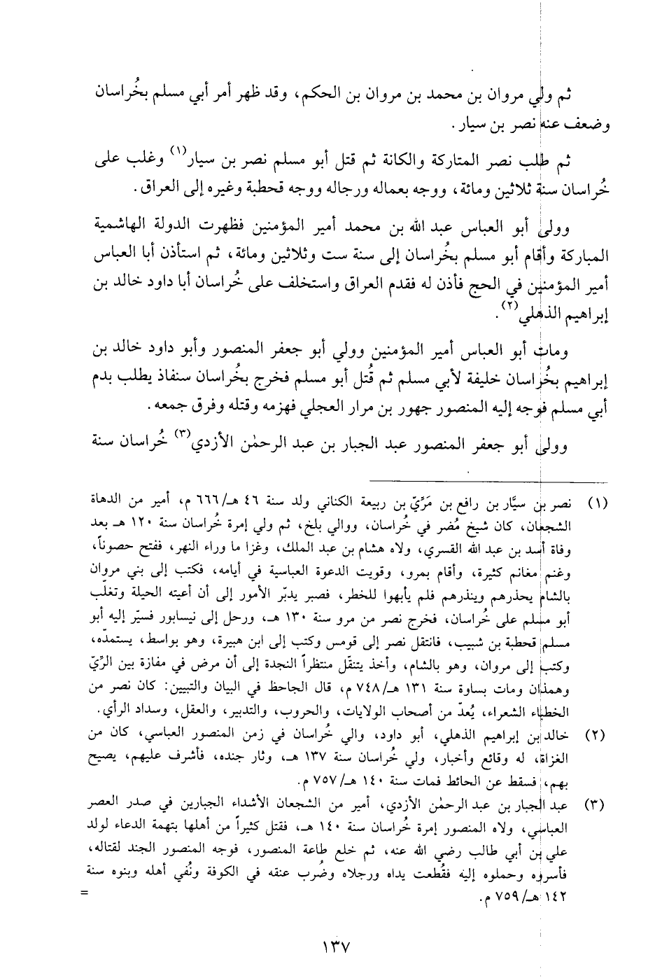 وولى أبو جعفر المنصور عبد الجبار بن عبد الرحمن الأزدي «3» خراسان سنة