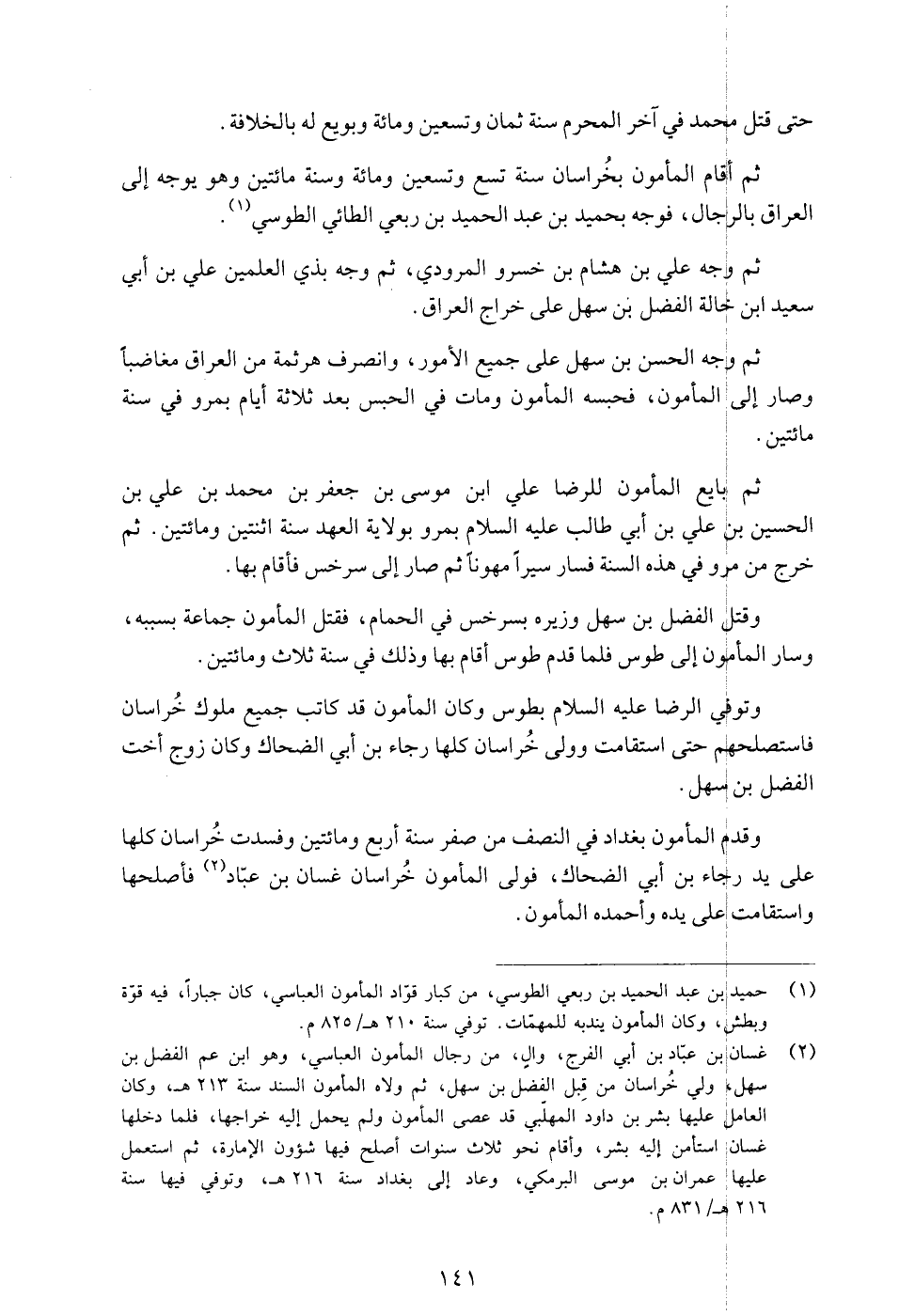 ثم أقام المأمون بخراسان سنة تسع وتسعين ومائة وسنة مائتين وهو يوجه إلى العراق بالرجال، فوجه بحميد بن عبد الحميد بن ربعي الطائي الطوسي «1» .