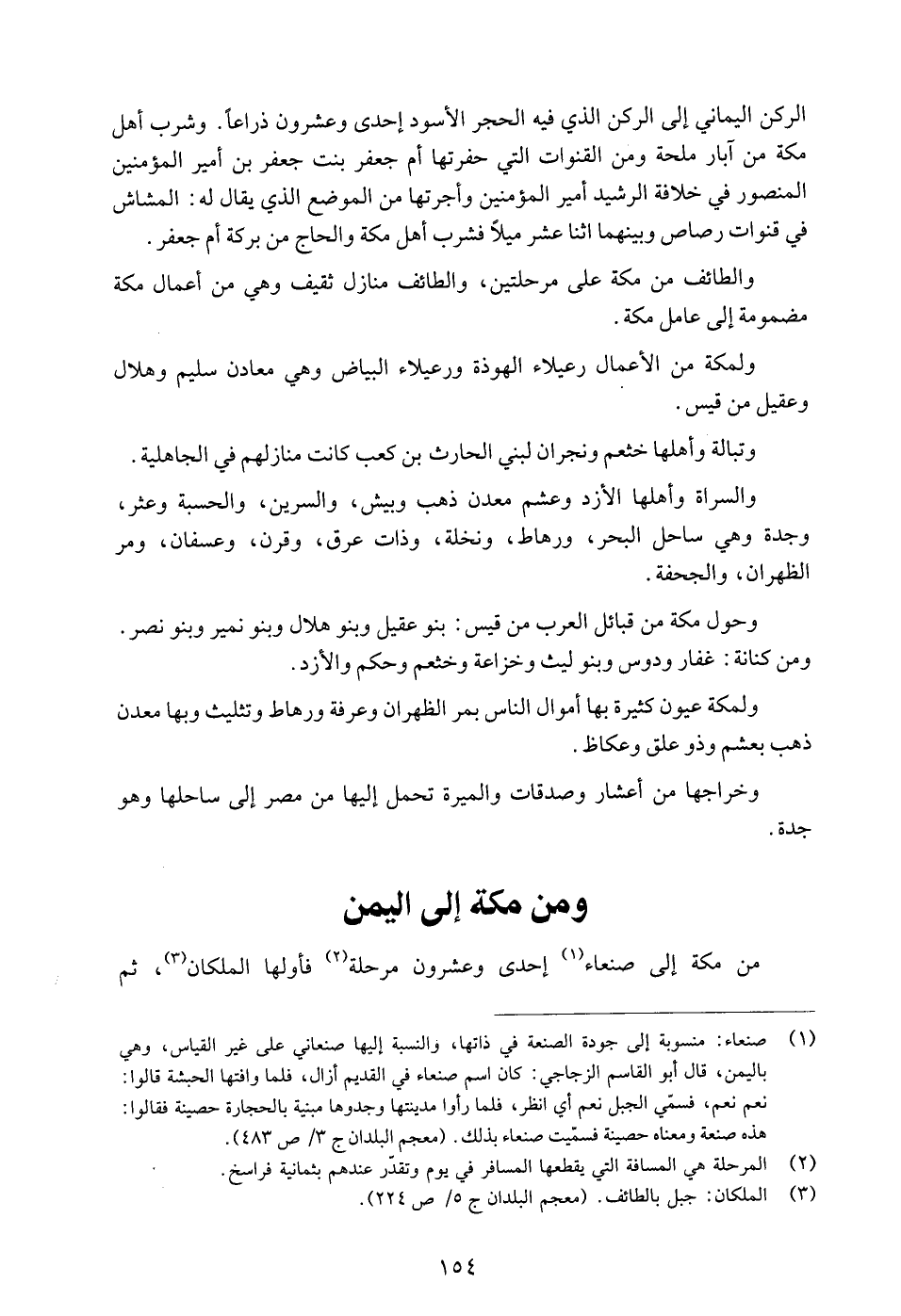من مكة إلى صنعاء «1» إحدى وعشرون مرحلة «2» فأولها الملكان «3» ، ثم