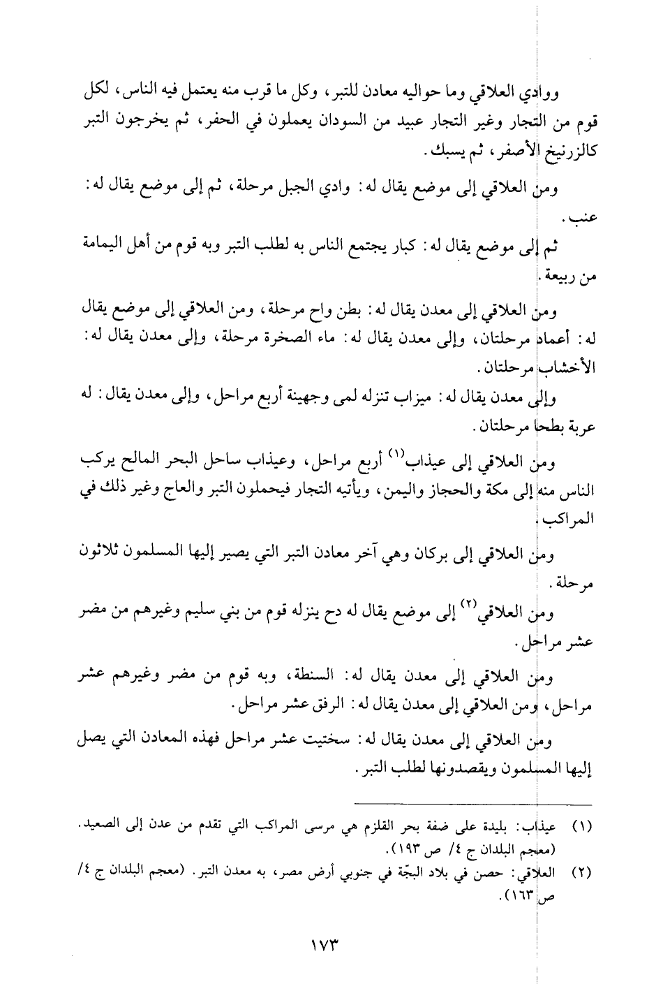 ومن العلاقي إلى بركان وهي آخر معادن التبر التي يصير إليها المسلمون ثلاثون مرحلة.