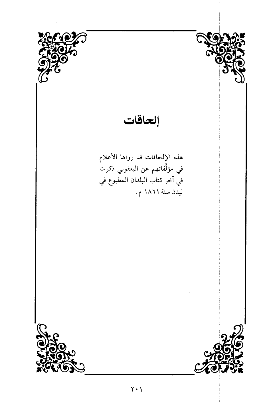 هذه الإلحاقات قد رواها الأعلام في مؤلّفاتهم عن اليعقوبي ذكرت في آخر كتاب البلدان المطبوع في ليدن سنة 1861 م.