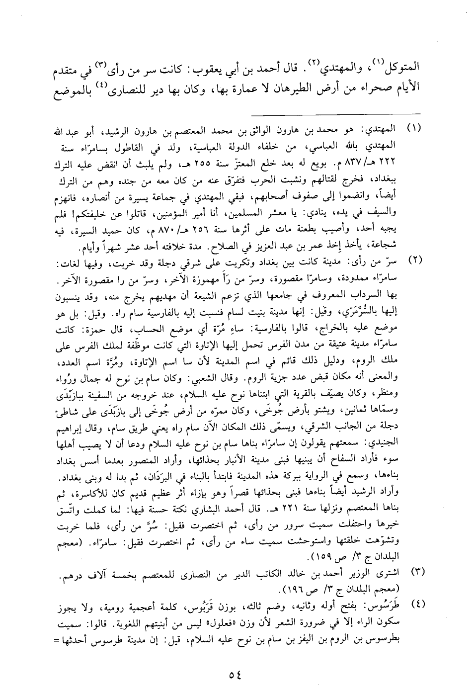 المتوكل «1» ، والمهتدي «2» . قال أحمد بن أبي يعقوب: كانت سر من رأى «3» في متقدم الأيام صحراء من أرض الطيرهان لا عمارة بها، وكان بها دير للنصارى «4» بالموضع