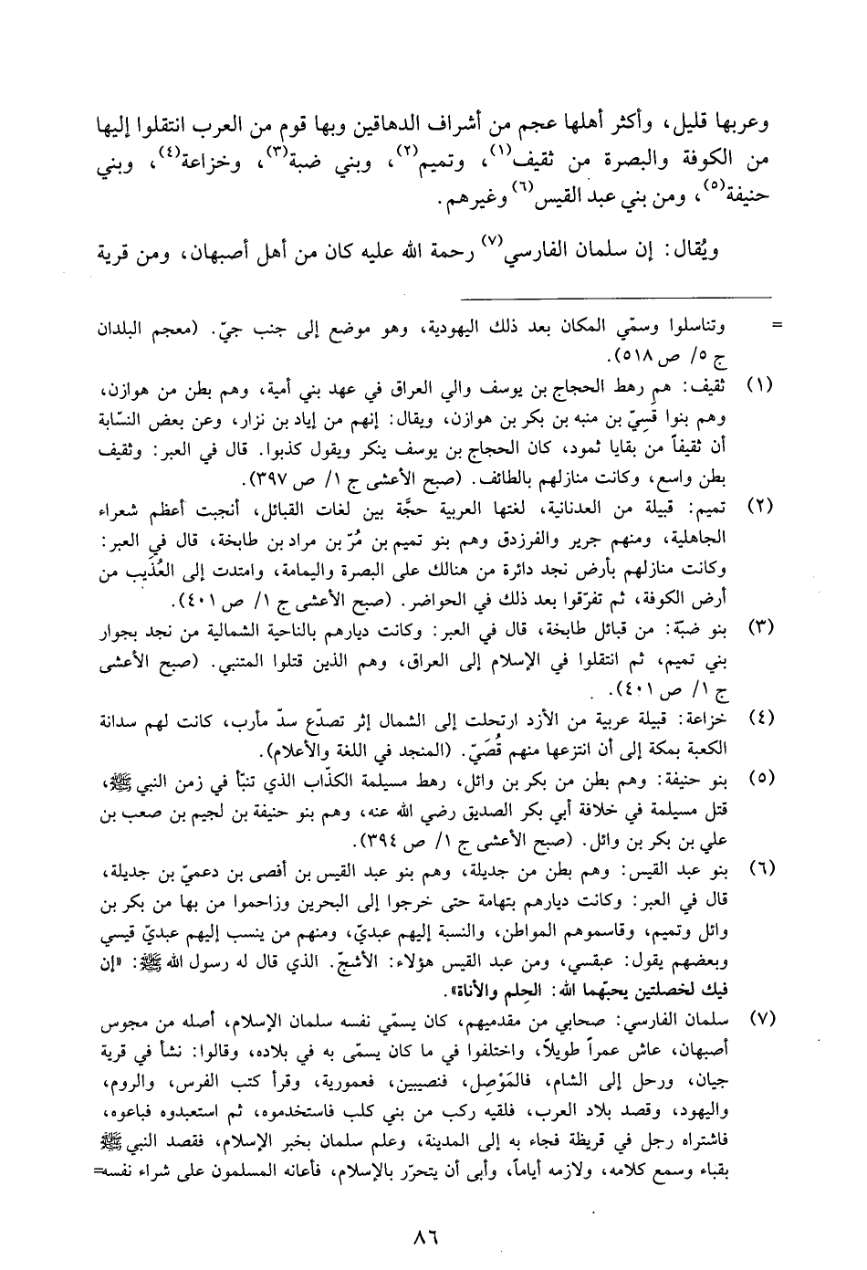 ويقال: إن سلمان الفارسي «7» رحمة الله عليه كان من أهل أصبهان، ومن قرية