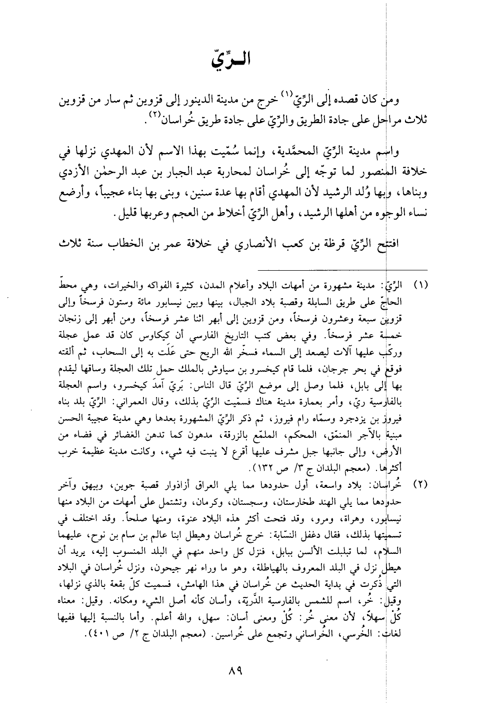 ومن كان قصده إلى الرّيّ «1» خرج من مدينة الدينور إلى قزوين ثم سار من قزوين ثلاث مراحل على جادة الطريق والرّيّ على جادة طريق خراسان «2» .