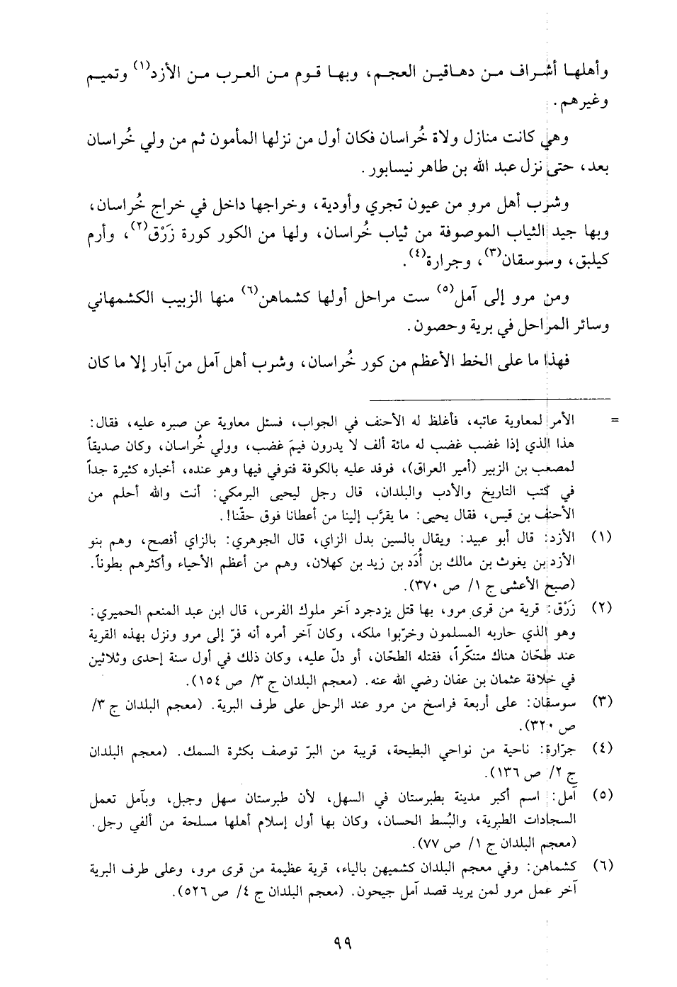 فهذا ما على الخط الأعظم من كور خراسان، وشرب أهل آمل من آبار إلا ما كان