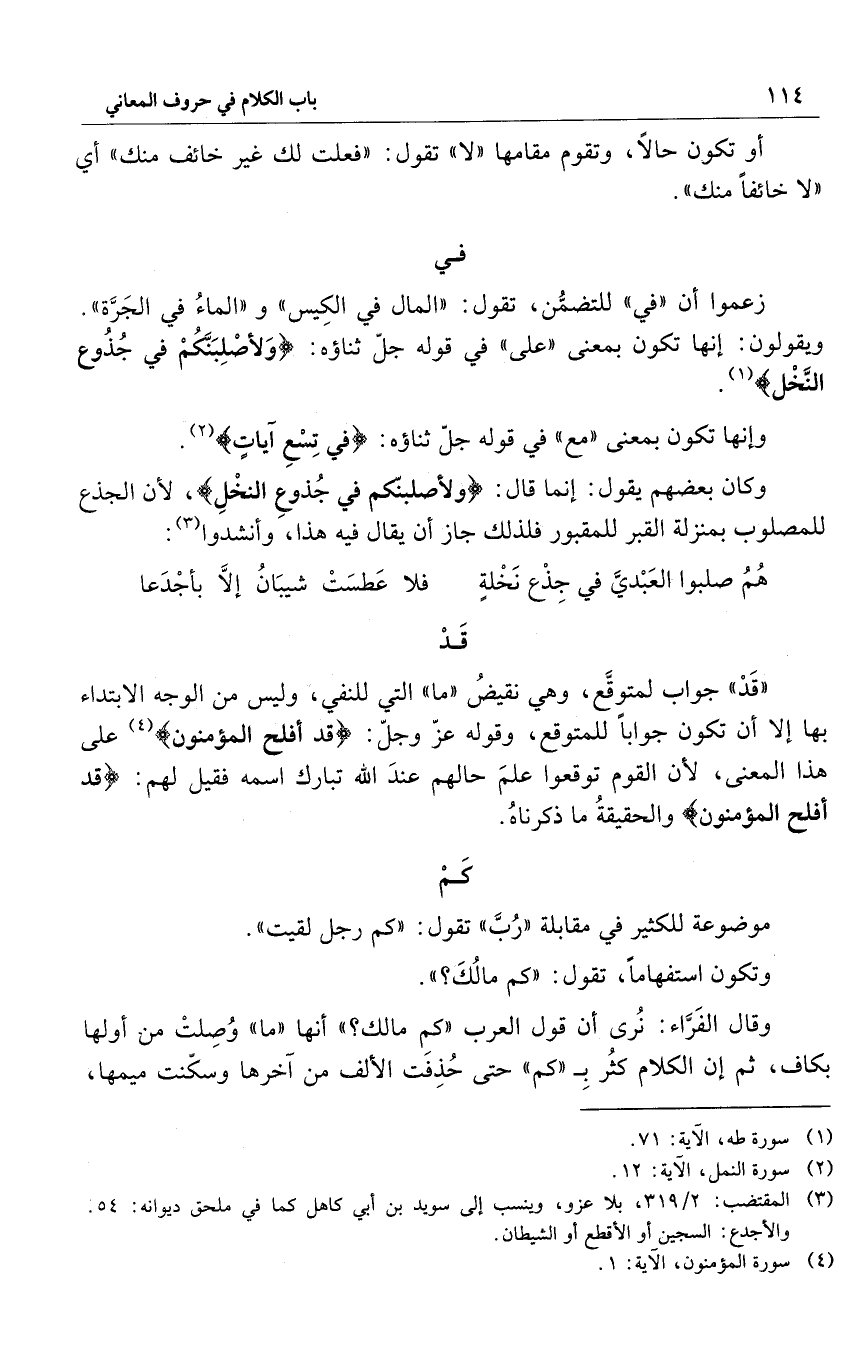 "قَدْ" جواب لمتوقَّع، وهي نقيضُ "ما" التي للنفي، وليس من الوجه الابتداء بها إلا أن تكون جواباً للمتوقع، وقوله عزّ وجلّ: {قَدْ أَفْلَحَ الْمُؤْمِنُونَ} على هذا المعنى، لأن القوم توقعوا علمَ حالهم عندَ الله تبارك اسمه فقيل لهم: {قَدْ أَفْلَحَ الْمُؤْمِنُونَ} 4 والحقيقةُ ما ذكرناه.