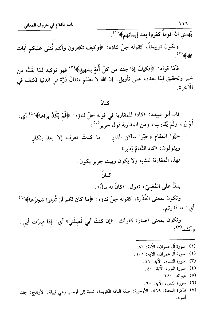 قال أبو عبيدة: "كاد" للمقاربة في قوله جلّ ثناؤه: {لَمْ يَكَدْ يَرَاهَا} 4 أي: لَمْ يَرَ. ولَمْ يُقارب. ومن المقاربة قول جرير5:
