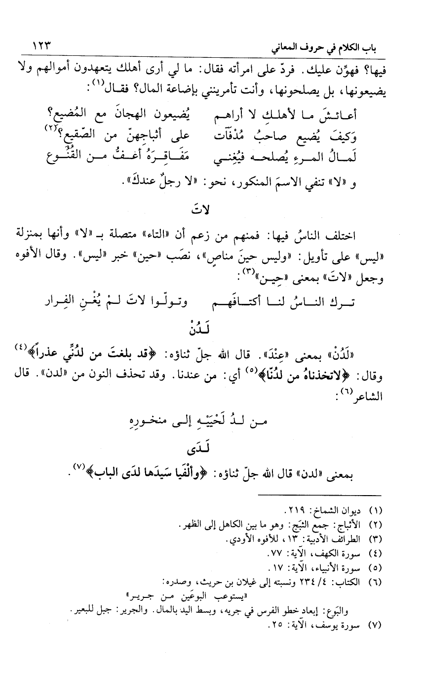بمعنى "لدن" قال الله جل ثناؤه: {وَأَلْفَيَا سَيِّدَهَا لَدَى الْبَابِ} 7.