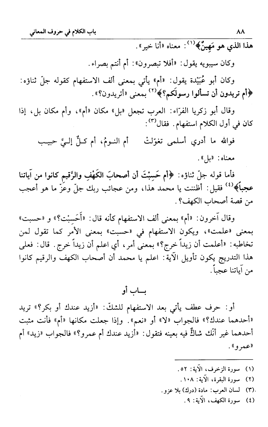 وَكَانَ أبو عُبَيْدة يقول: "أم" يأتي المعنى ألف الاستفهام كقوله جلّ ثناؤه {أَمْ تُرِيدُونَ أَنْ تَسْأَلُوا رَسُولَكُمْ} 2 بمعنى "أتريدون"?
