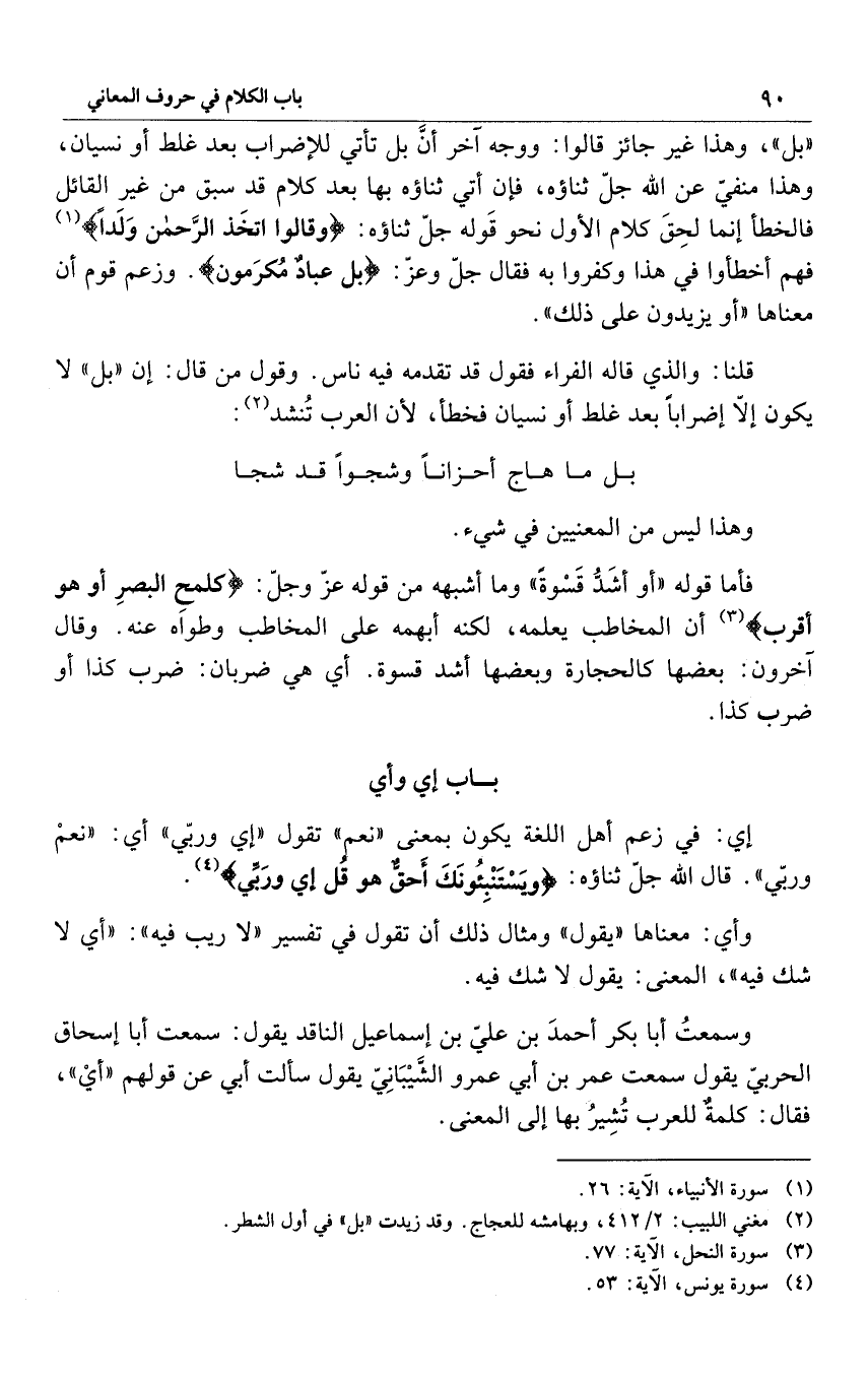 قلنا: والذي قاله الفراء فقول قَدْ تقدمه فِيهِ ناس. وقول من قال: أن "بل" لا يكون إلاّ إضراباً بعد غلط أو نسيان فخطأ، لأن العرب تُنشد2: