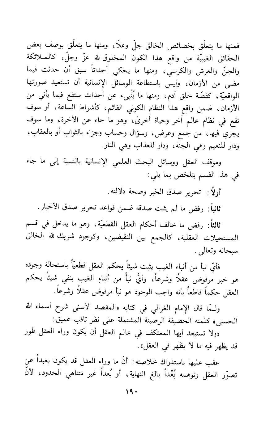 ولما قال الإمام الغزالي في كتابه "المقصد الأسنى شرح أسماء الله الحسنى" كلمته الحصيفة الرصينة المشتملة على نظر ثاقب عميق:
