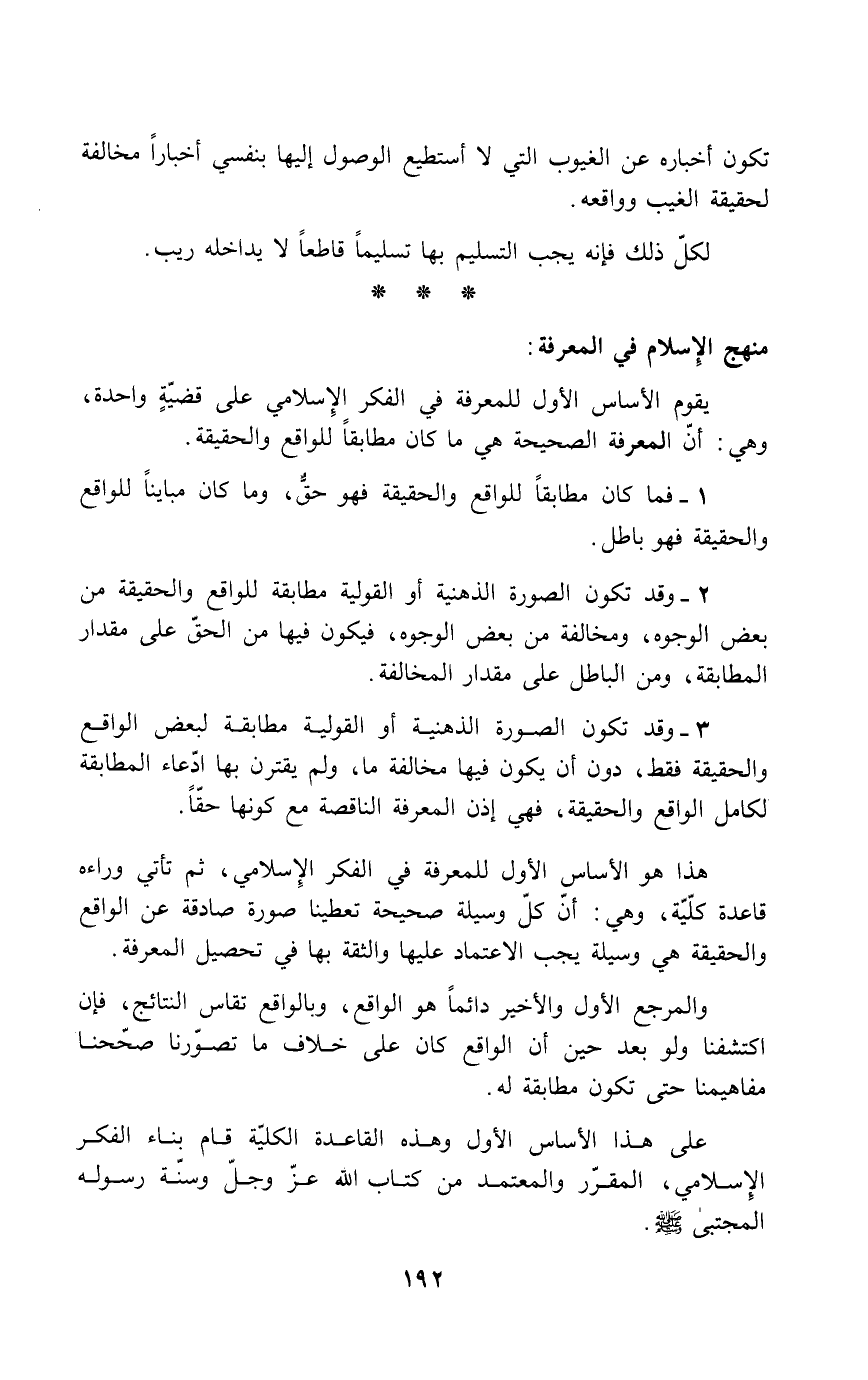 على هذا الأساس الأول وهذه القاعدة الكلية قام بناء الفكر الإسلامي، المقرر والمعتمد من كتاب الله عزّ وجلّ وسنة رسوله المجتبى.