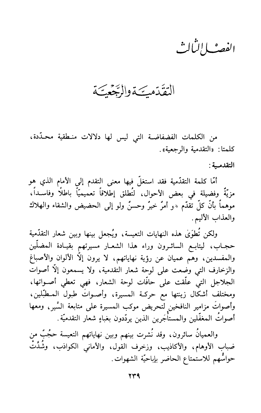 من الكلمات الفضفاضة التي ليست لها دلالات منطقية محددة، كلمتا: "التقدمية والرجعية".