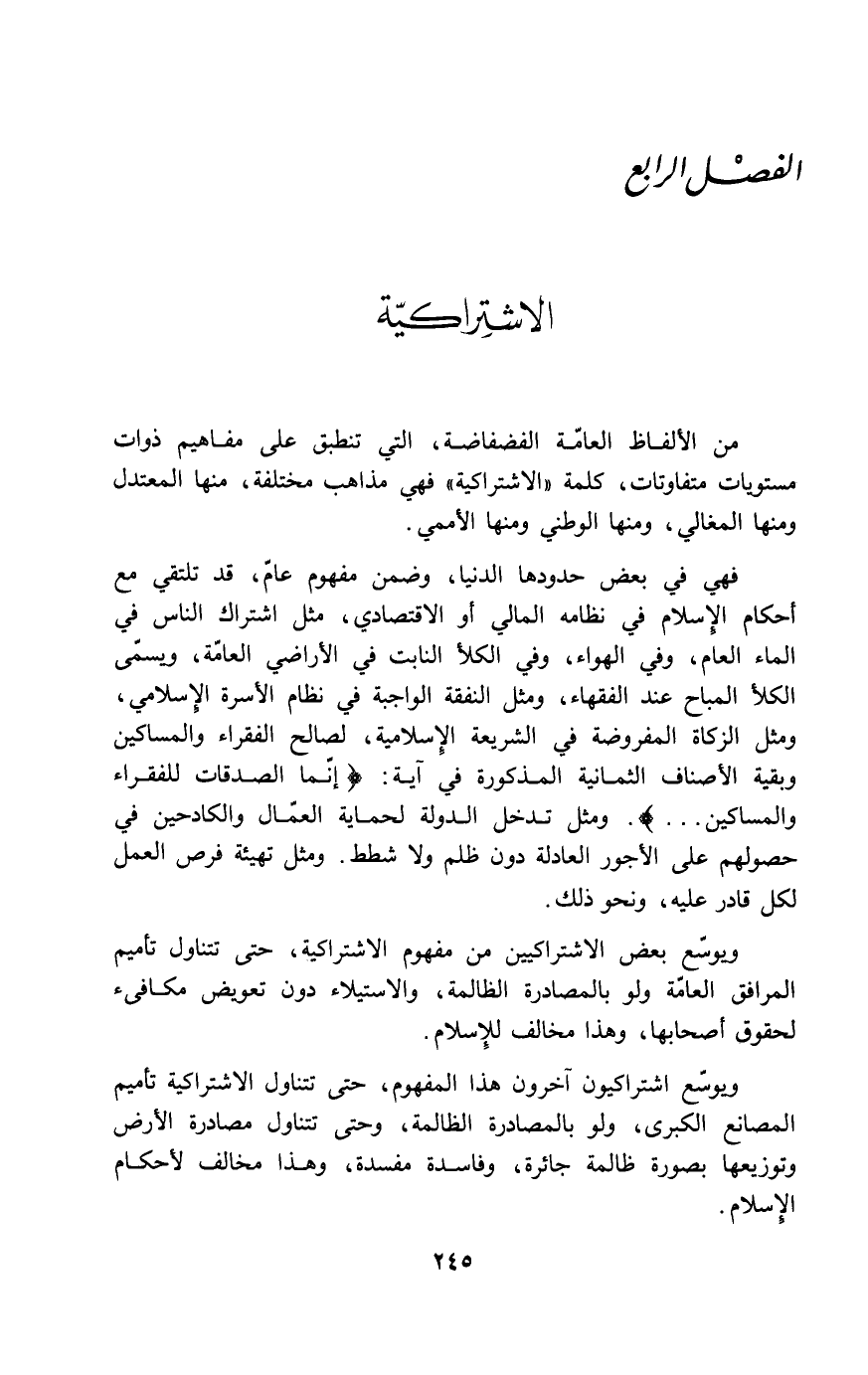 من الألفاظ العامّة الفضفاضة، التي تنطبق على مفاهيم ذوات مستويات متفاوتات، كلمة "الاشتراكية" فهي مذاهب مختلفة، منها المعتدل ومنها المغالي، ومنها الوطني ومنها الأممي.
