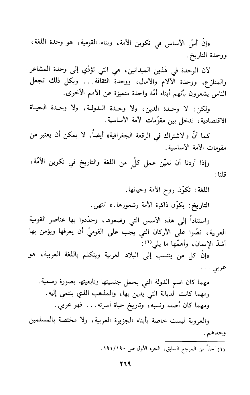 " إن كل من ينتسب إلى البلاد العربية ويتكلم باللغة العربية، هو عربي ...