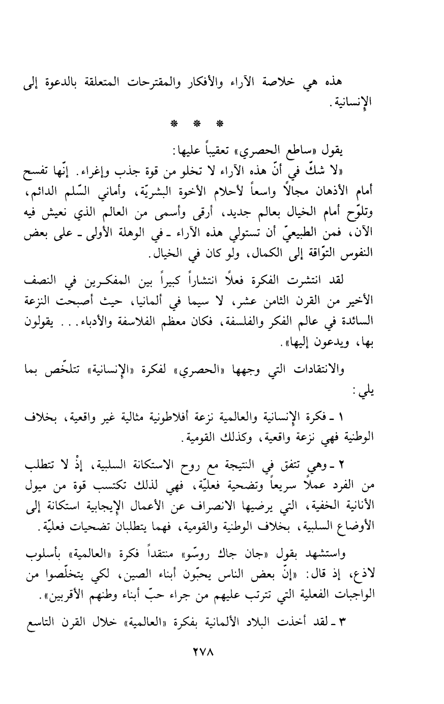 والانتقادات التي وجهها "الحصري" لفكرة "الإنسانية" تتلخّص بما يلي: