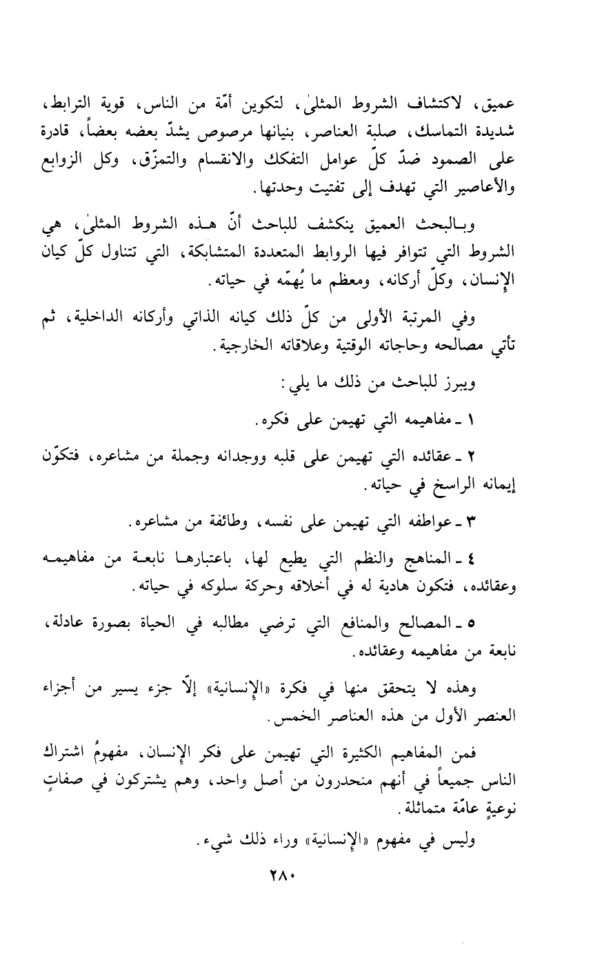 عميق، لاكتشاف الشروط المثلى، لتكوين أمة من الناس، قوية الترابط، شديدة التماسك، صلبة العناصر، بنيانها مرصوص يشد بعضه بعضاً، قادرة على الصمود ضد كل عوام التفكك والانقسام والتمزق، وكل الزوابع والأعاصير التي تهدف إلى تفتيت وحدتها.