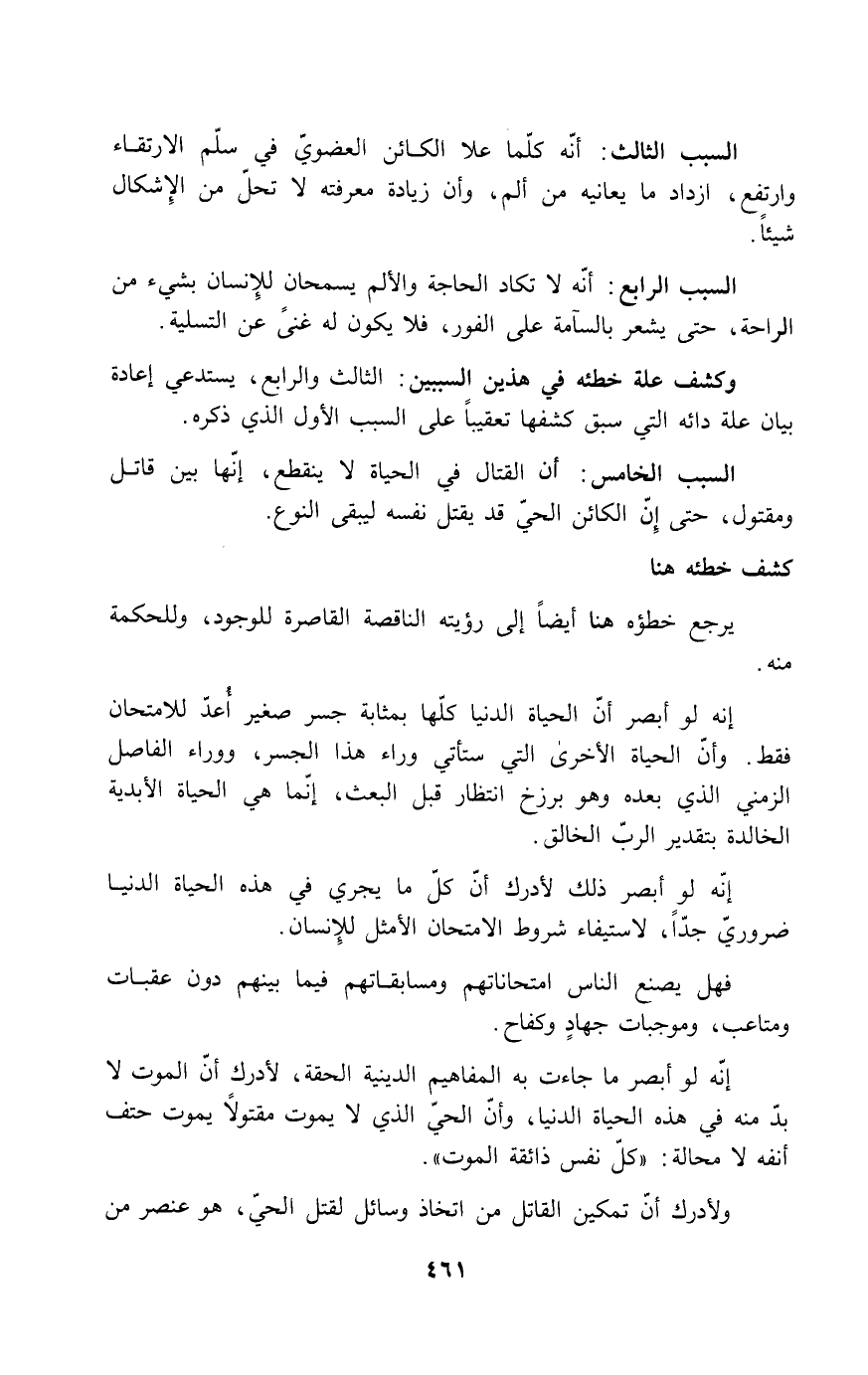 إنه لو أبصر ما جاءت به المفاهيم الدينية الحقة، لأدرك أن الموت لا بد منه في هذه الحياة الدنيا، وأن الحي الذي لا يموت مقتولاً يموت حتف أنفه لا محالة: "كل نفس ذائقة الموت".