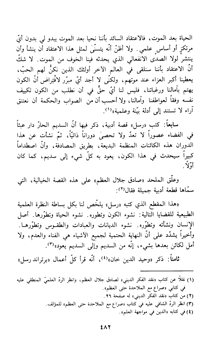ثامناً: ذكر "وحيد الدين خان"، أنه قرأ كل أعمال "برتراندرسل"