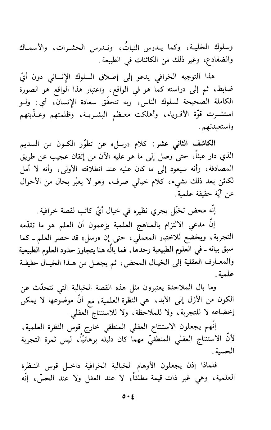 فلماذا إذن يجعلون الأوهام الخيالية الخرافية داخل قوس النظرة العلمية، وهي غير ذات قيمة مطلقاً، لا عند العقل ولا عند الحس، إنه