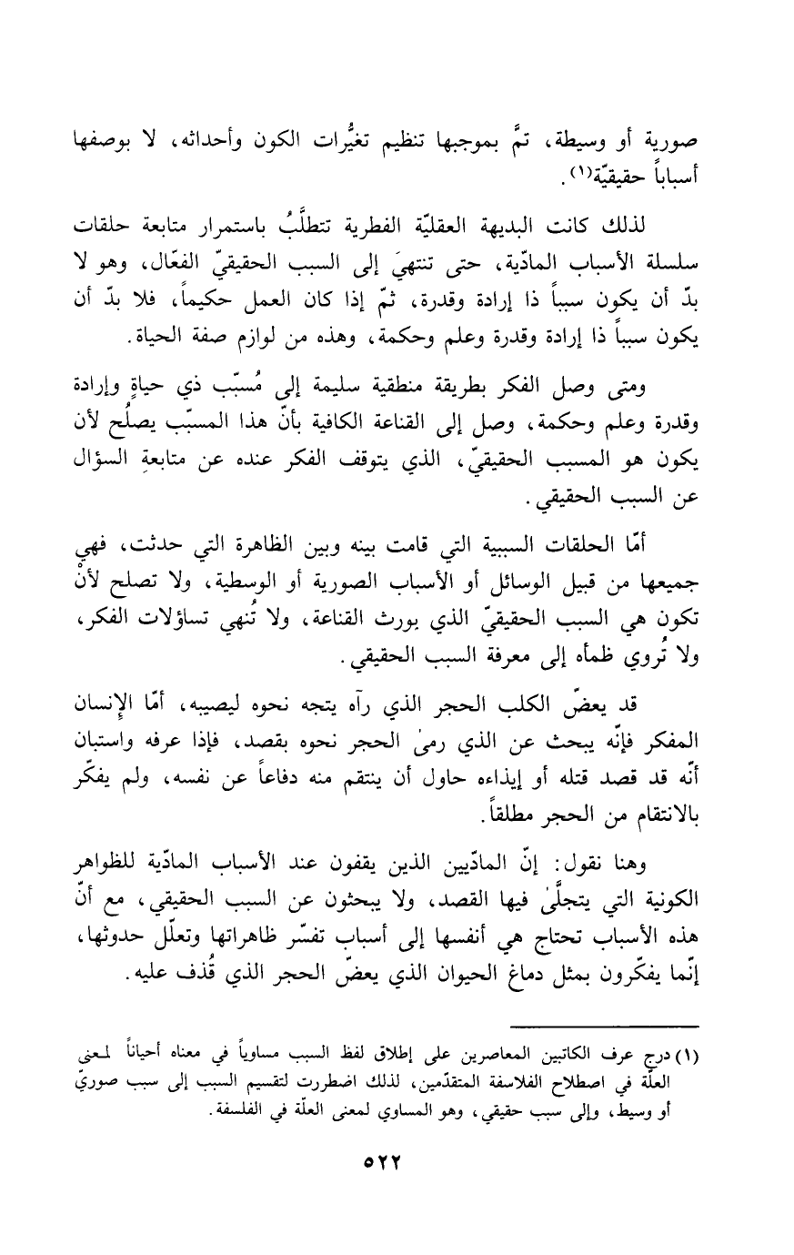 أما الحلقات السببية التي قامت بينه وبين الظاهرة التي حدثت، فهي جميعها من قبيل الوسائل أو الأسباب الصورية أو الوسطية، ولا تصلح لأن تكون هي السبب الحقيقي الذي يورث القناعة، ولا تُنهي تساؤلات الفكر، ولا تُروي ظمأه إلى معرفة السبب الحقيقي.