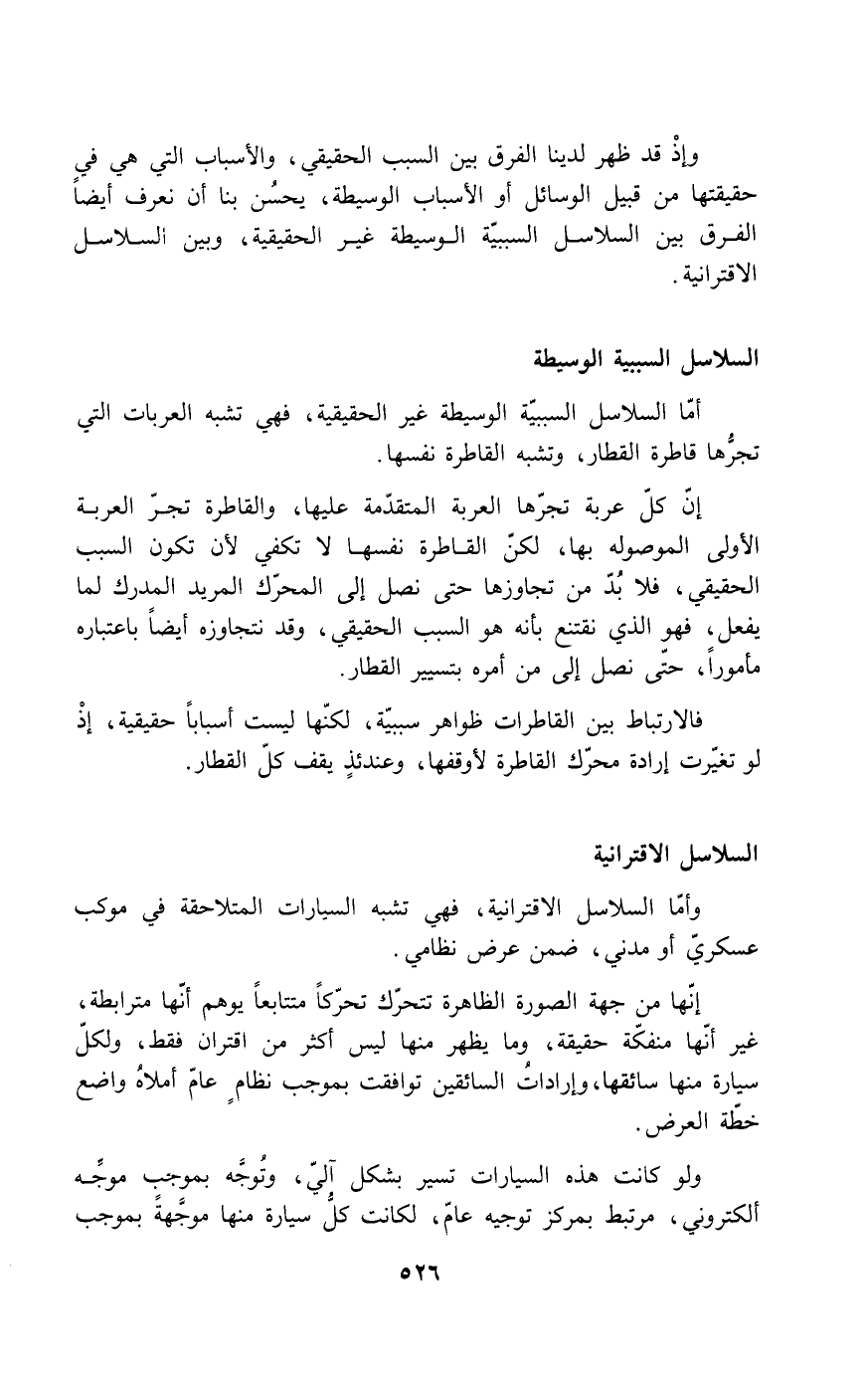 فالارتباط بين القاطرات ظواهر سببية، لكنها ليست أسباباً حقيقية، إذ لو تغيرت إرادة محرك القاطرة لأوقفها، وعندئذٍ يقف كل القطار.