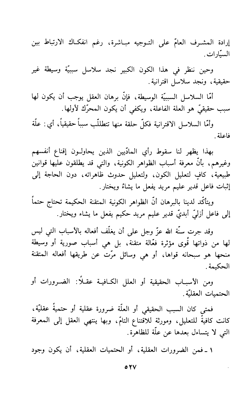 وحين ننظر في هذا الكون الكبير نجد سلاسل سببية وسيطة غير حقيقية، ونجد سلاسل اقترانية.