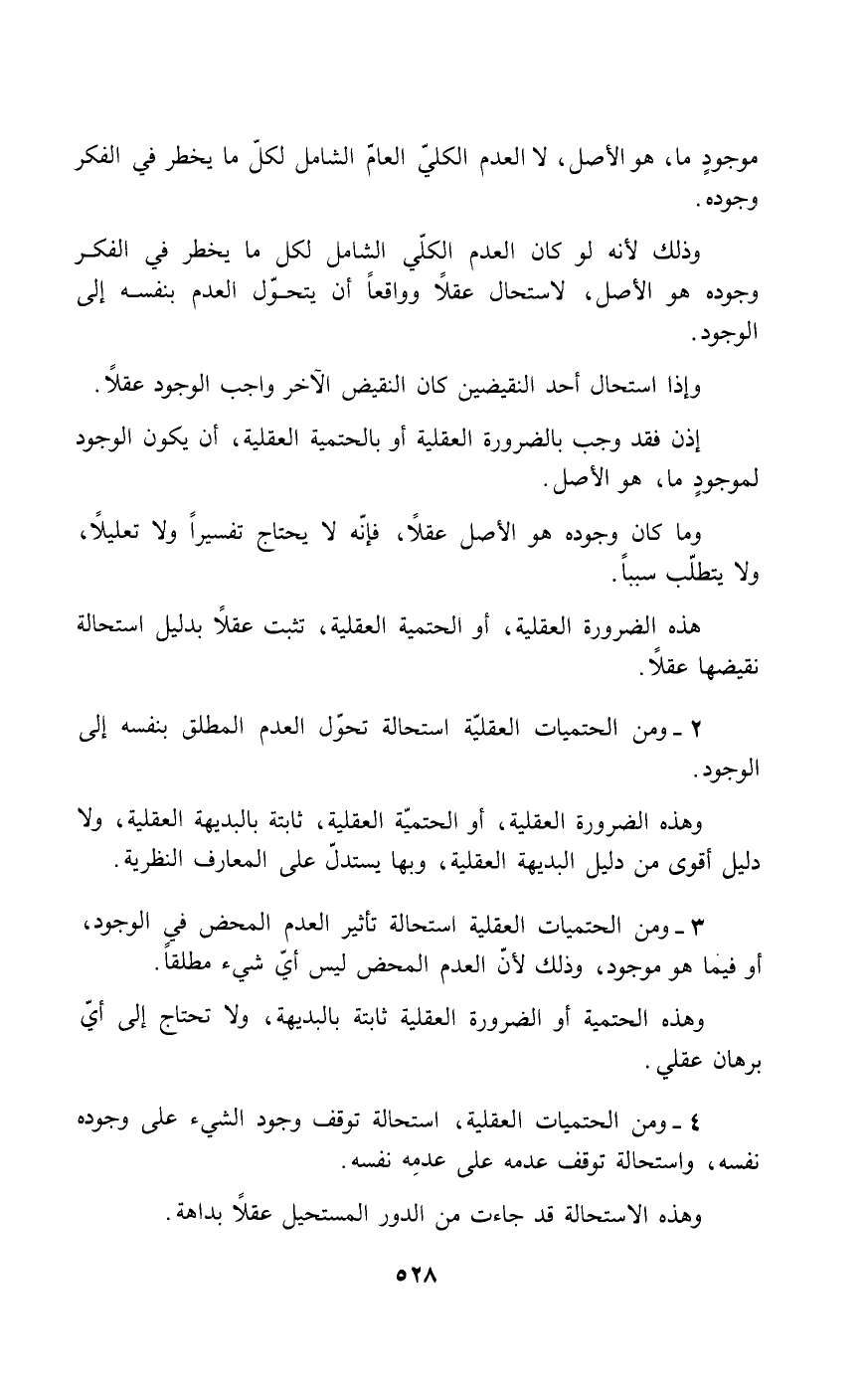 إذن فقد وجب بالضرورة العقلية أو بالحتمية العقلية، أن يكون الوجود لموجودٍ ما، هو الأصل.
