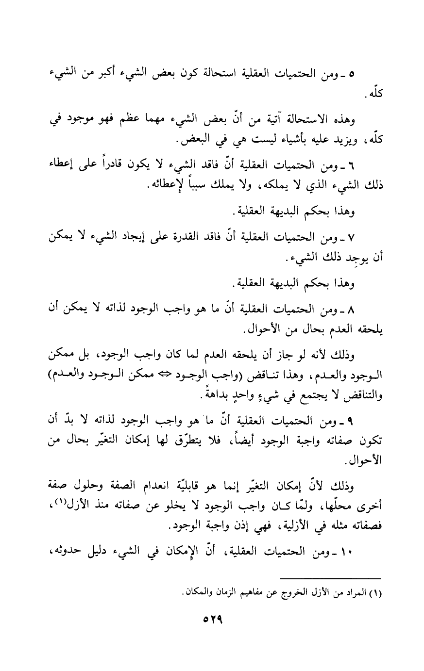 8- ومن الحتميات العقلية أن ما هو واجب الوجود لذاته لا يمكن أن يلحقه العدم بحال من الأحوال.