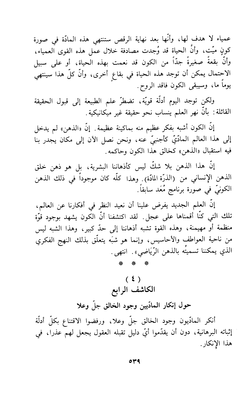 إن هذا الذهن بلا شك ليس كأذهاننا البشرية، بل هو ذهن خلق الذهن الإنساني من (الذرة المادة) . وهذا كله كان موجوداً في ذلك الذهن الكوني في صورة برنامج مُعد سابقاً.