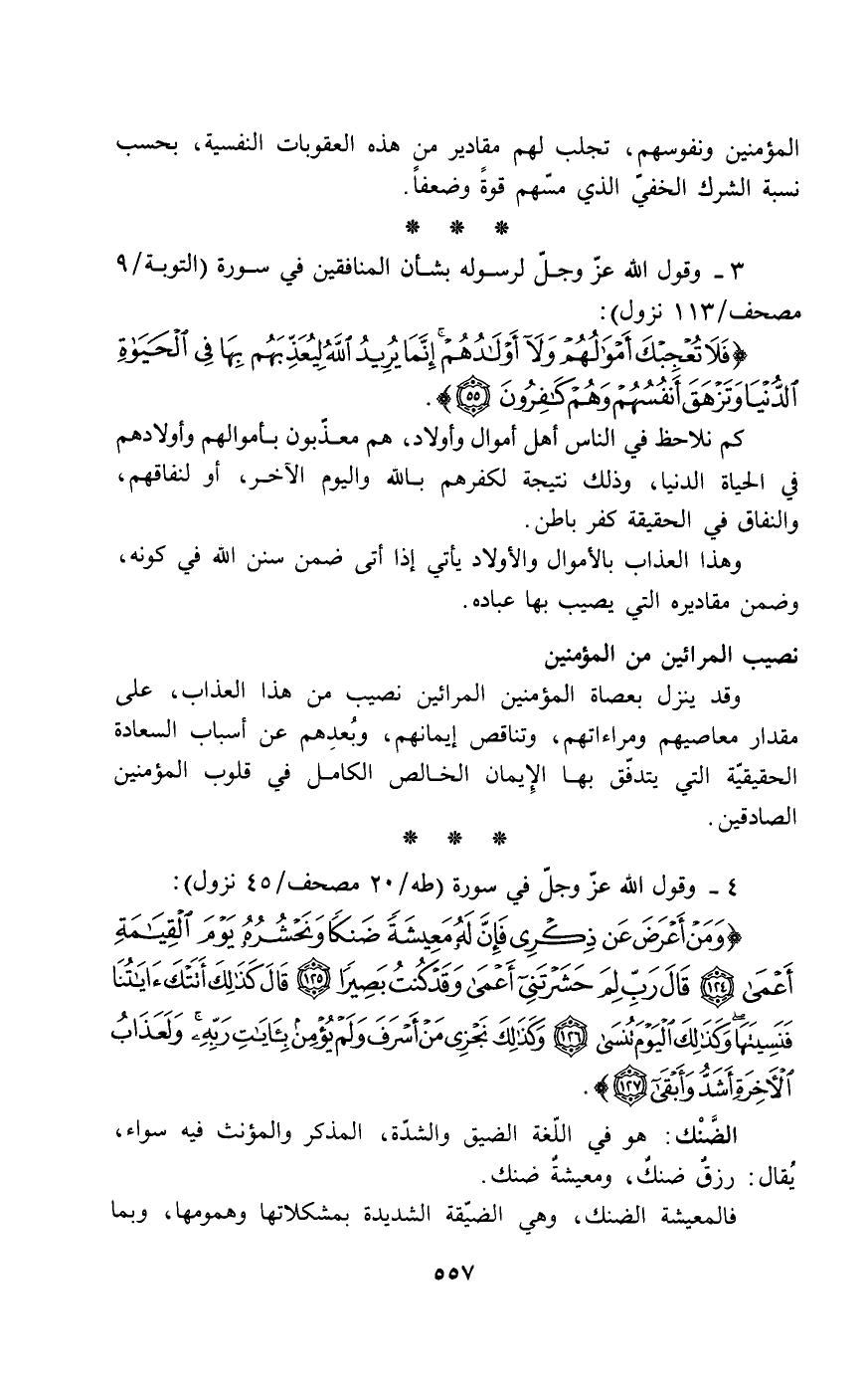 المؤمنين ونفوسهم، تجلب لهم مقادير من هذه العقوبات النفسية، بحسب سبة الشرك الخفي الذي مسهم قوةً وضعفاً.