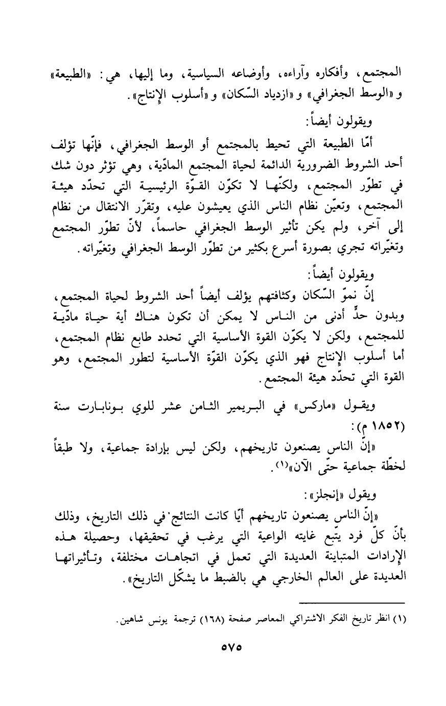 "إن الناس يصنعون تاريخهم، ولكن ليس بإرادة جماعية، ولا طبقاً لخطة جماعية حتى الآن".