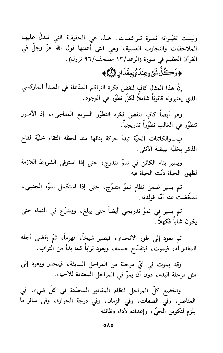 إن هذا المثال كافٍ لنقض فكرة التراكم المدعاة في المبدأ الماركسي الذي يعتبرونه قانوناً شاملاً لكل تطور في الوجود.