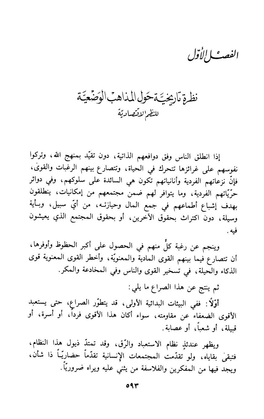 ويظهر عندئذٍ نظام الاستعباد والرق، وقد تمتد ذيول هذا النظام، فتبقى بقاياه، ولو تقدمت المجتمعات الإنسانية تقدماً حضارياً ذا شأن، ويجد فيها من المفكرين والفلاسفة من يثني عليه ويراه ضرورياً.