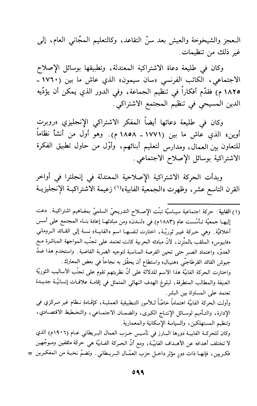 وكان في طليعة دعاة الاشتراكية المعتدلة، وتطبيقها بوسائل الإصلاح الاجتماعي، الكاتب الفرنسي "سان سيمون" الذي عاش ما بين (1760-1825م) فقدم أفكاراً في تنظيم الجماعة، وفي الدور الذي يمكن أن يؤديه الدين المسيحي في تنظيم المجتمع الاشتراكي.