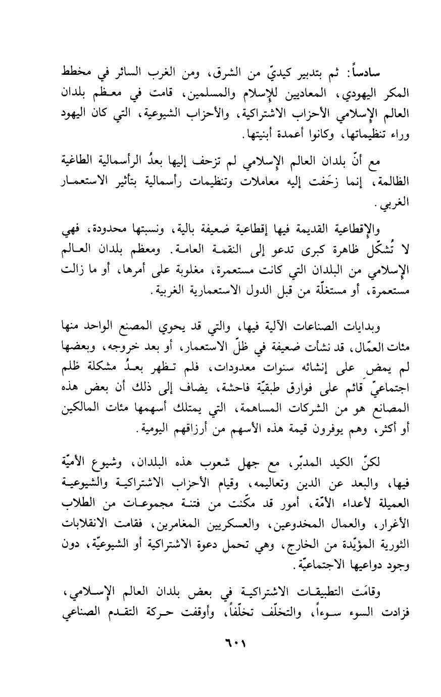 مع أن بلدان العالم الإسلامي لم تزحف إليها بعدُ الرأسمالية الطاغية الظالمة، إنما زحفت إليه معاملات وتنظيمات رأسمالية بتأثير الاستعمار الغربي.