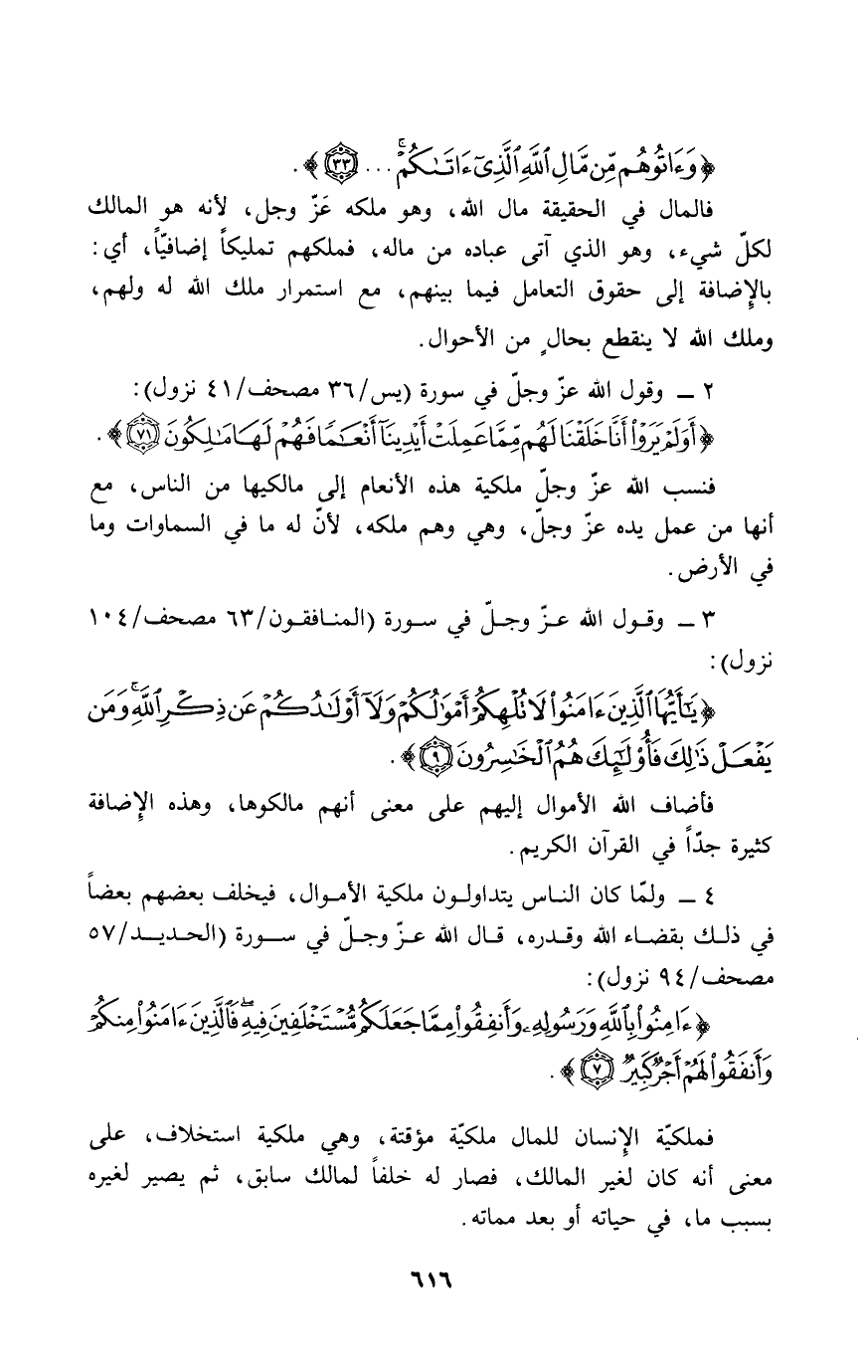 4- ولما كان الناس يتداولون ملكية الأموال، فيخلف بعضهم بعضاً في ذلك بقضاء الله وقدره، قال الله عز وجل في سورة (الحديد/57 مصحف/94 نزول) :