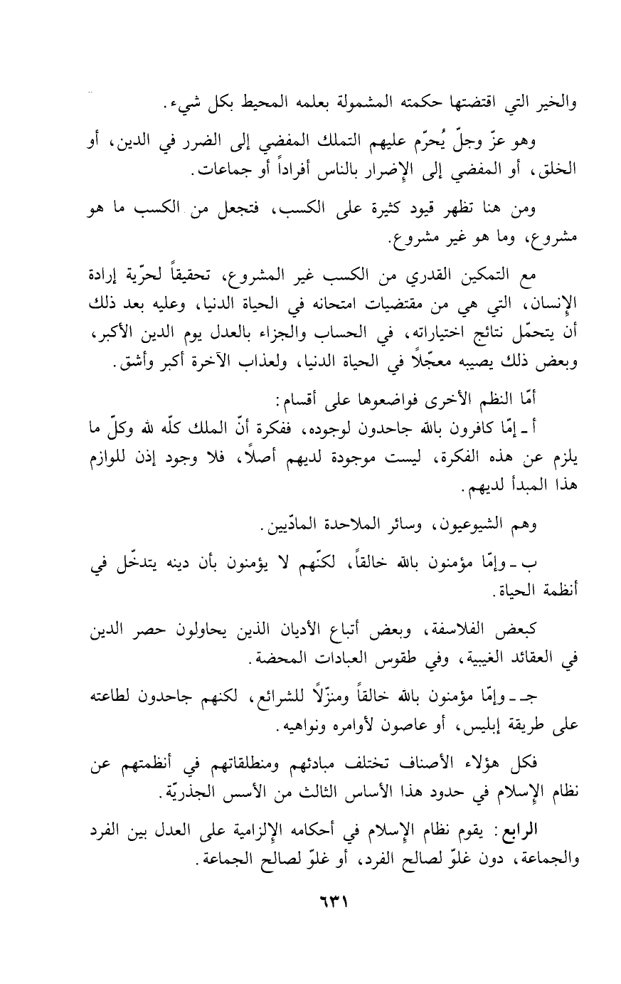 فكل هؤلاء الأصناف تختلف مبادئهم ومنطلقاتهم في أنظمتهم عن نظام الإسلام في حدود هذا الأساس الثالث من الأسس الجذرية.