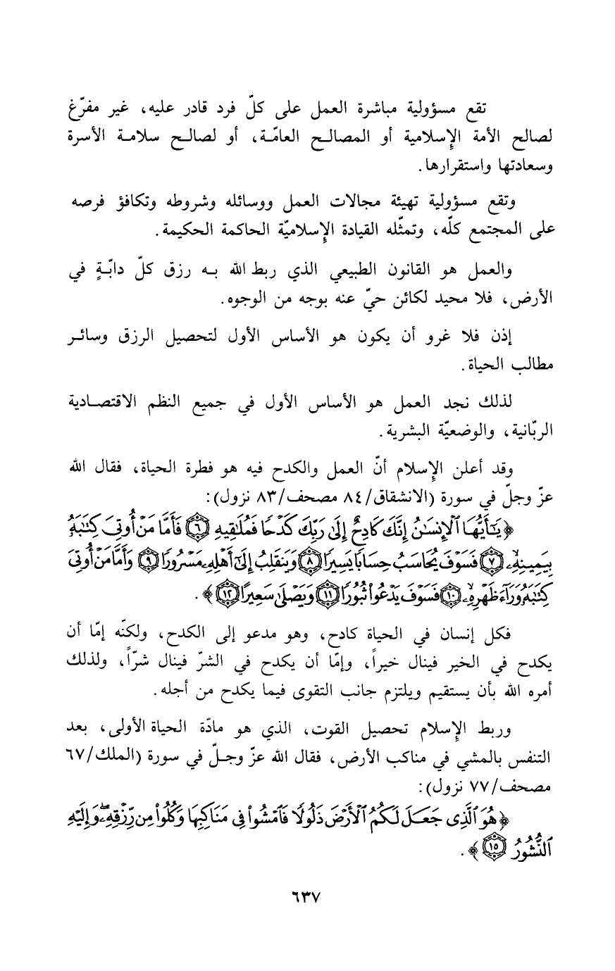 والعمل هو القانون الطبيعي الذي ربط الله به رزق كل دابةٍ في الأرض، فلا محيد لكائن حي عنه بوجه من الوجوه.