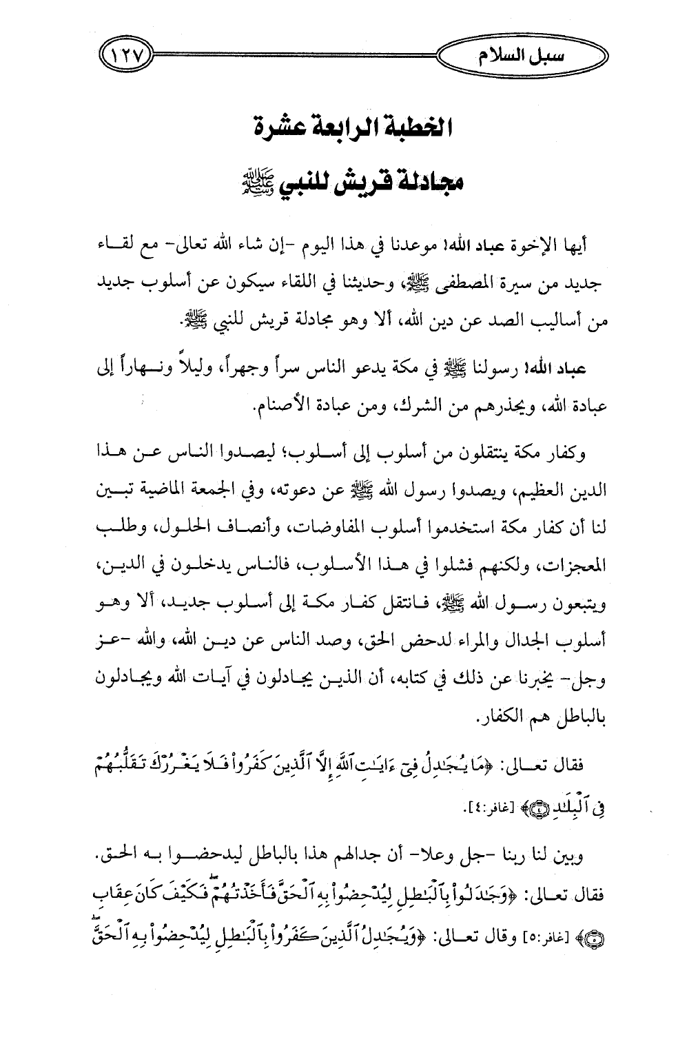 الخطبة الرابعة عشرة: مجادلة قريش للنبي - صلى الله عليه وسلم -