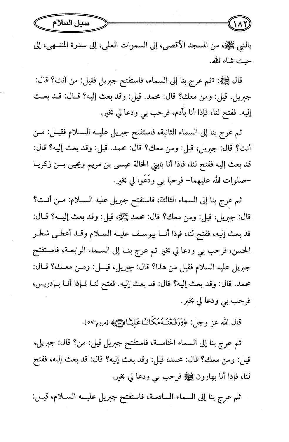 ثم عرج بنا إلى السماء السادسة، فاستفتح جبريل عليه السلام، قيل: