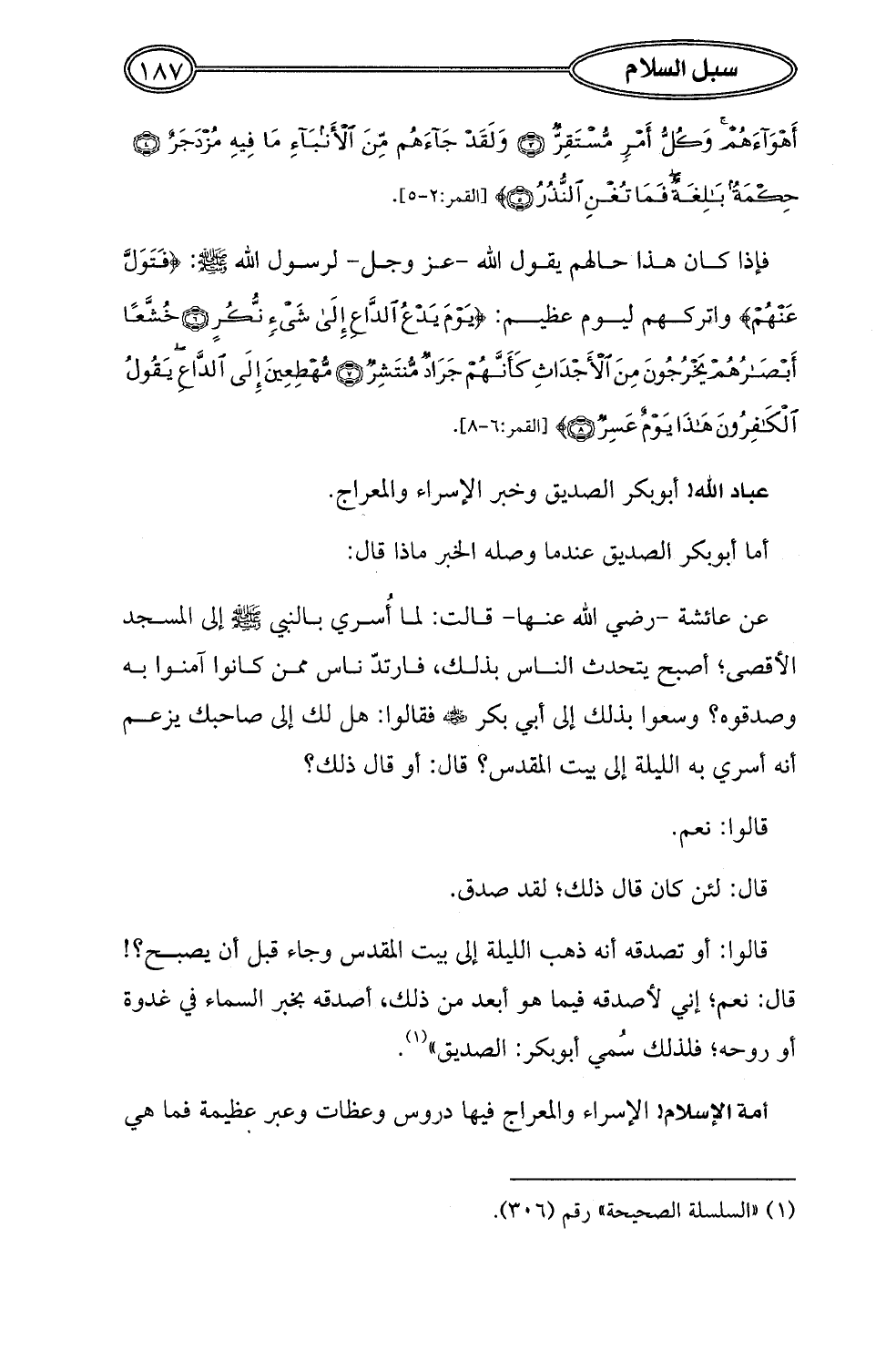 عباد الله! أبو بكر الصديق وخبر الإسراء والمعراج.