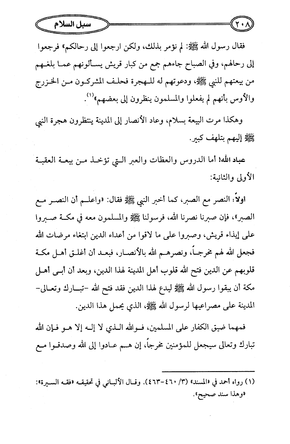 (¬1) رواه أحمد في "المسند" (3/ 460 - 463). وقال الألباني في تحقيقه "فقه السيرة": "وهذا سند صحيح".