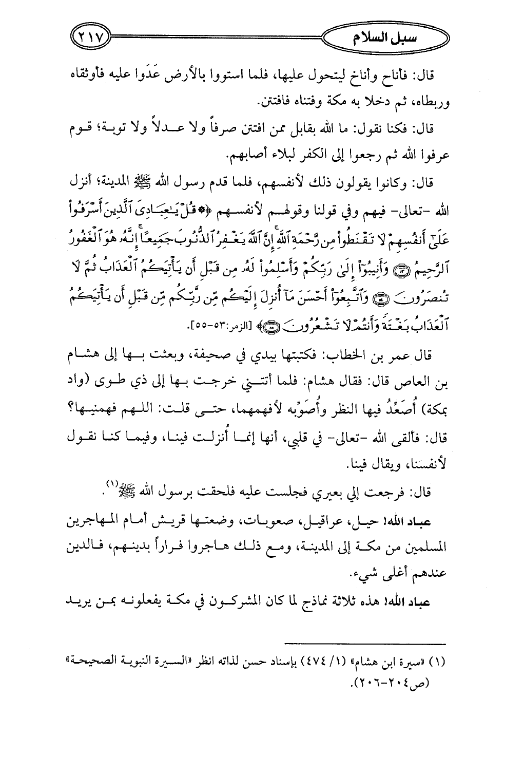 (¬1) "سيرة ابن هشام" (1/ 474) بإسناد حسن لذاته انظر "السيرة النبوية الصحيحة" (ص 204 - 206).